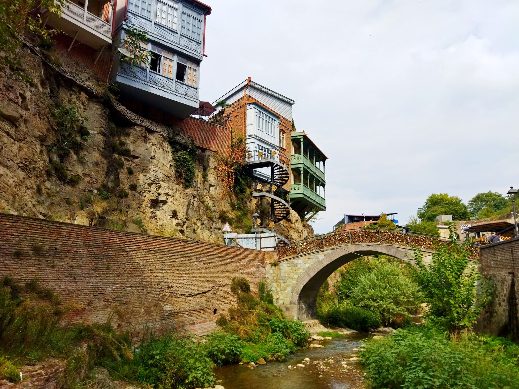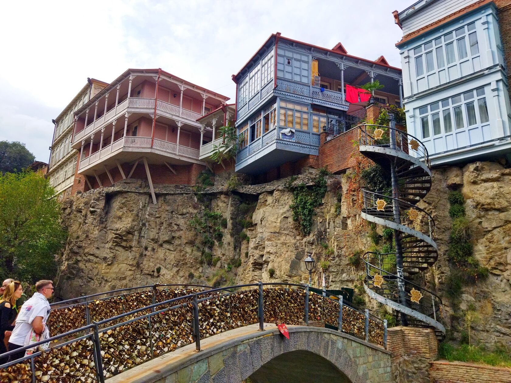 Ну и визитная карточка что Тбилиси в частности, что Сакартвело в целом - знаменитые, уцепившиеся за край обрыва дома, с ажурными, нависающими над бездной изящными балконами, на которых аборигены безмятежно потребляют утренний кофе.