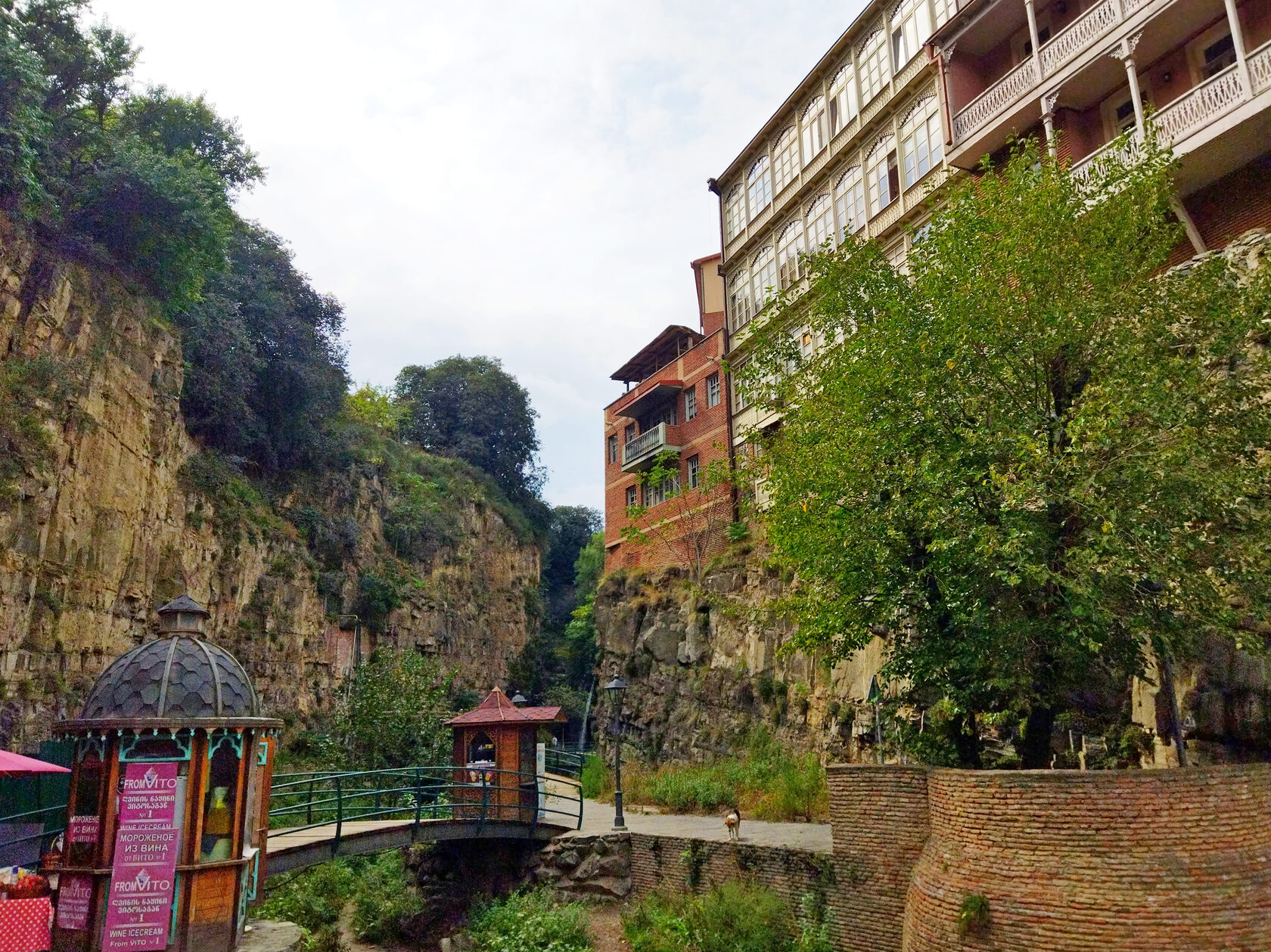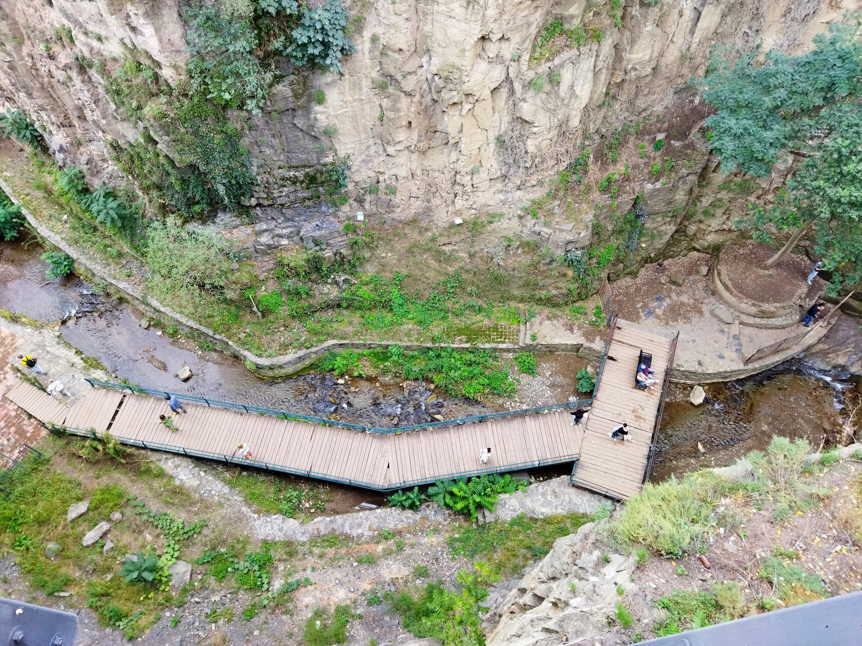Но в Тбилиси умудрились пойти дальше - избавили туриста от необходимости долго пилить по горным дорогам, слушая детские крики и рассказы о храбрых рыцарях, обратившихся утёсами, и капризных принцессах, обращённых в водяную пену - Инжирное ущелье, предлагающее полный набор зрелищных прелестей, расположилось в самом центре грузинской столицы.