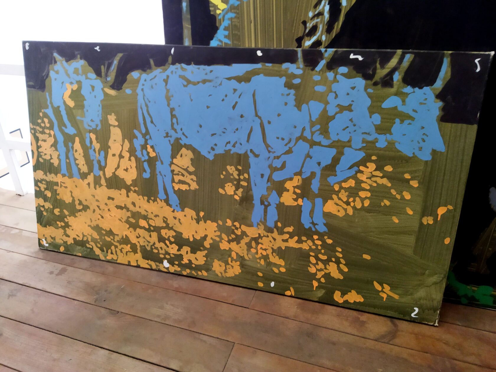 Переносящего минималистичными мазками на холст фотографии.