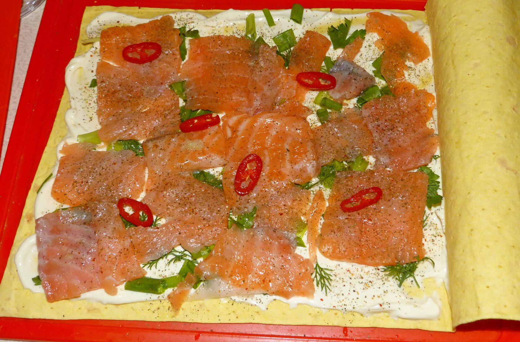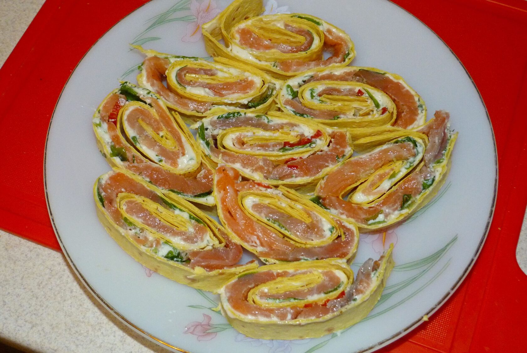 Рулеты с красной рыбой накрутить - классика.