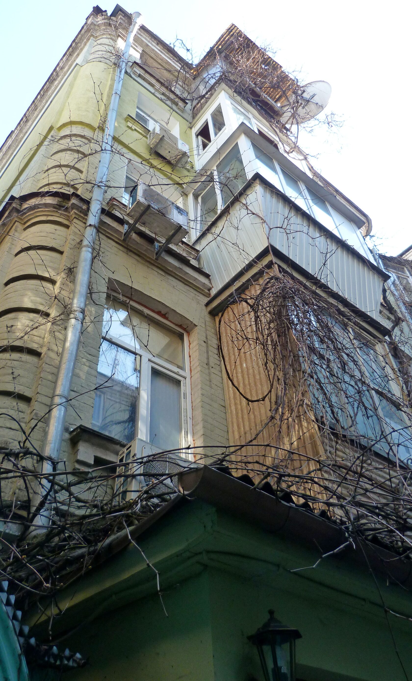 С интровертски убегающими ввысь окнами.