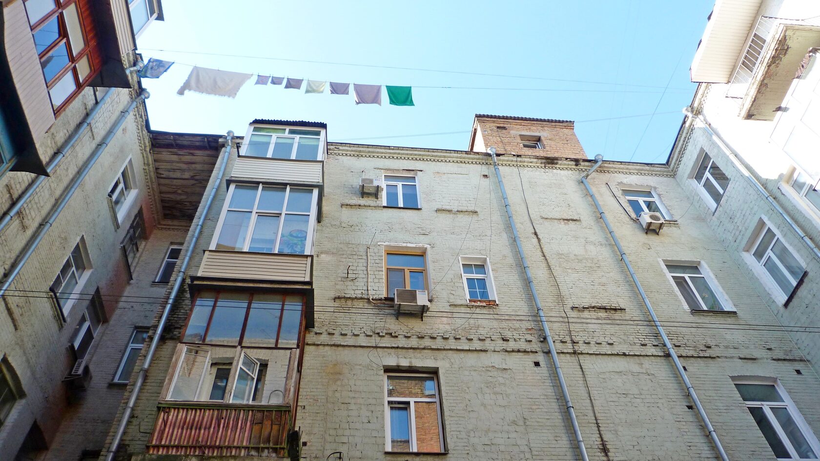 Параллельно - шум посуды в мойке, гомон обычных жилых квартир.