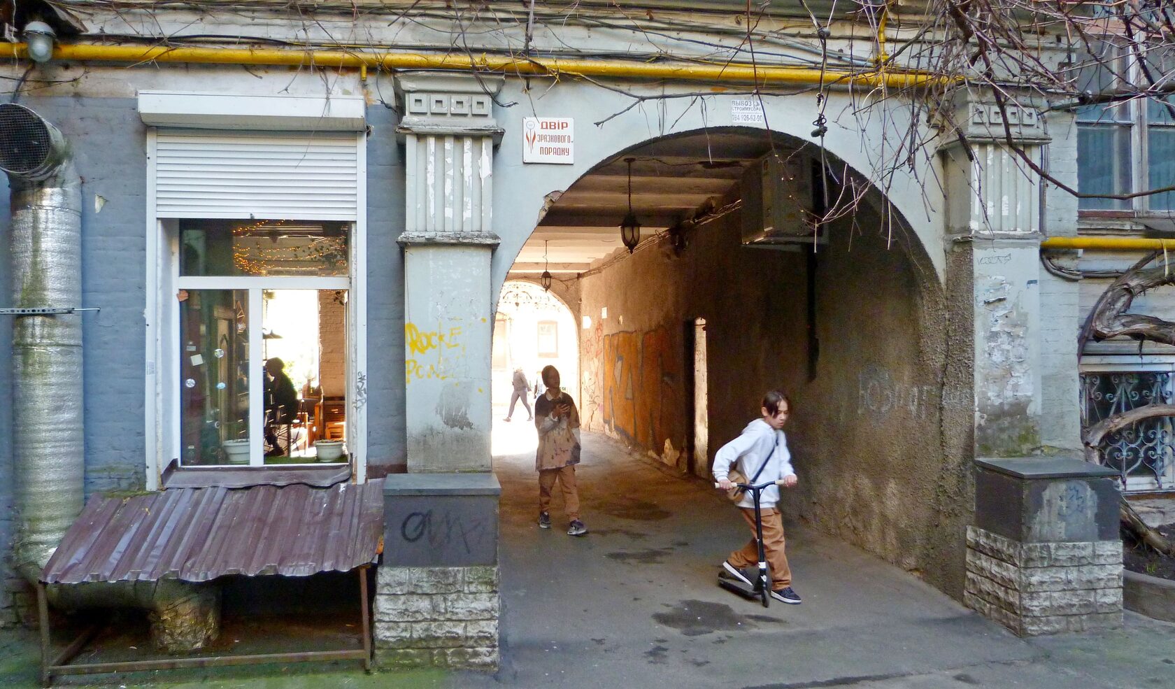 Помимо двух сообщающихся дворов, с "одесского" дворика есть также проход-кишка в третью сторону, вглубь.